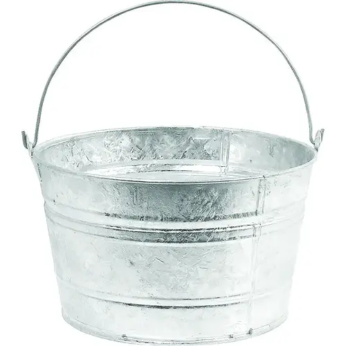 For household and utility use. Double-seamed bottom, reinforced top. Easy carry, extra heavy bail handle. 14 in x 8-3/8 in H.
