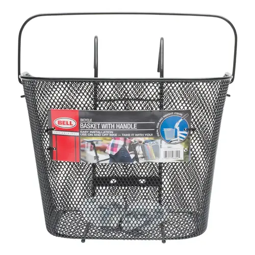 Quick release handlebar basket features weather-resistant, durable welded metal mesh and folding carry handle. Positive locking quick release handlebar mounts allow for easy on and off from bike.