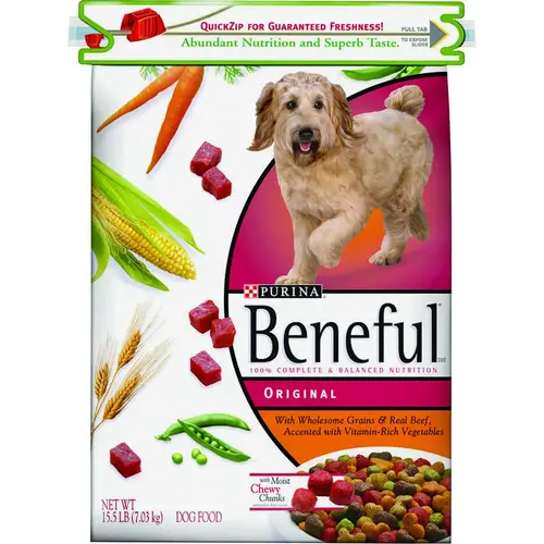 Good ingredients is what you'll find at the heart of our Originals With real Beef recipe. We take our #1 ingredient, real farm-raised beef and blend it to perfection with whole grains and accents of vegetables. It's 100% nutrition with a taste your adult dog will love.
