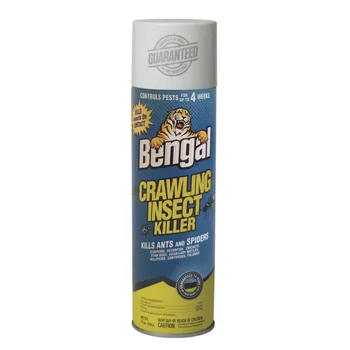 Bengal Crawling Insect Killer, 16 oz Net Content, Aerosol Can Container, Usage Location: Indoor, Outdoor, Slight Solvent Odor/Scent, White, Compositions: Permethrin, Petroleum Distillates, Liquefied Petroleum Gas, <98 % VOC, Spray Application Method, Flammability: 4, <130 deg F, 70 psig Pressure, 1 Specific Gravity