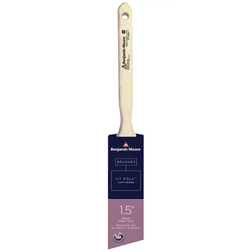 Benjamin Moore Paint Brush, Brush Type: Soft, CT Polymer Bristle, 1-1/2 in Ferrule, Ferrule Material: Stainless Steel, Wood Handle, Angle Sash Handle, Suitable for: Latex Paints and Stains