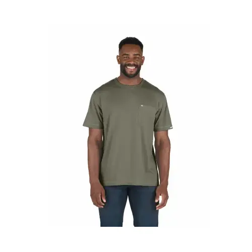 Large Lichen Short Sleeve Light Weight T-Shirt. Moisture-wicking technology dries sweat quickly. Stain release keeps this T-Shirt looking new. Athletic fit for a modern look with room to move. Taped neck seam and tagleShort Sleeve neck label prevent chafing. Chest pocket easily stores small items.