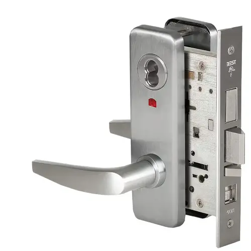 Grade 1 Office Mortise Lock, Visual Keyed Indicator, 16 Lever, J Escutcheon, SFIC Housing Less Core, Satin Chrome Finish, Field Reversible