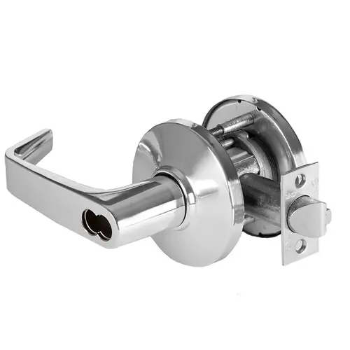 Grade 1 Special Cylindrical Lock, Lost Motion, 15 Lever, D Rose, SFIC Less Core, Bright Chrome Finish, 2-3/4" ANSI Strike, Non-handed Bright Chrome