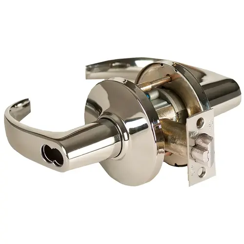 Grade 1 Communicating Cylindrical Lock, Lost Motion, 14 Lever, D Rose, SFIC Less Core, Bright Nickel Finish, 2-3/4" ANSI Strike, Non-handed