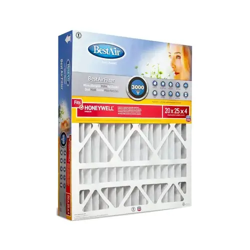 BestAir Air Filter, 13 MERV Rating, 99 % Filter Efficiency, Electrostatically Filter Media, 24-5/8 in Length, 19-3/4 in Width, 4-1/4 in Thickness, Suitable for: Honeywell F100B1032, F100B1040, F100F1087, F100F1095, F100F2044, F100F2051, F200E1037, 203720, F35/35R FC35A1027, F100/150 FC100A1037, F200 F200E1037, CF100A1025, CF100A1058, FC100A1037, FC200E1037, POPUP2025, MERV 13 Air Cleaner