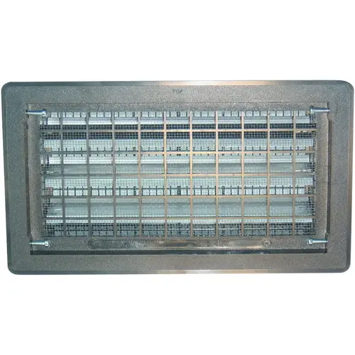 Replaces old-style manual vents. Fits standard 8 in x 16 in vent openings. Automatically opens at 70 deg F and closes at 40 (approximately). The key mechanism, bi-metal coil, fully enclosed in protective cover. Stainless steel compression spring with 1 adjustable screw for easy installation. 65 sq-in net-free area. High-density thermo-plastic construction. Stainless steel and corrosion-resistant metal parts. Heavy-duty aluminum mesh screen, front and back. No electrical hook-up required. 8 in x 16 in.