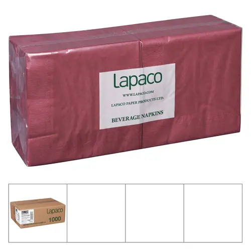 Lapaco 2 Ply Burgundy Beverage Napkin 1000 Each - 1 per Case