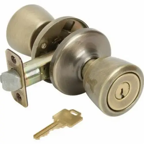 The Beverly Single Cylinder Keyed Entry Door Knob is typically used on a front or back exterior door and is operated with a key from the exterior of the home and a thumb turn from the interior.