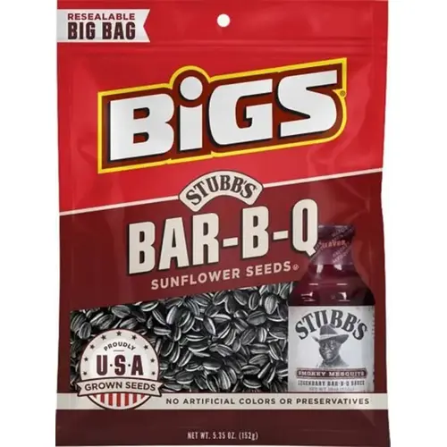 BIGS 607455 Stubb's Series Sunflower Seeds, Tangy BBQ Flavor, 5.35 oz Bag