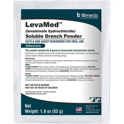 LevaMed (levamisole hydrochloride) Soluble Drench Powder is a broad spectrum anthelmintic and is effective against certain nematode infections in cattle and sheep.
