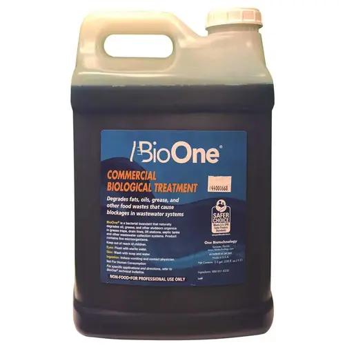 BioOne is a uniquely effective, 100% natural drain line, septic and grease trap maintainer. Applied on a regular basis after a drain or septic treatment, BioOne will help to maintain free flowing drains, eliminate odors and reduce the number of back-ups between scheduled pumping. BioOne does not contain enzymes, emulsifiers, or caustic agents and is safer for people, pets and pipes than many drain treatments. In fact, BioOne displays the Environmental Protection Agency™s Safer Choice Program logo that allows customers to quickly identify and choose products that can help protect the environment and are safer for families. Adding these beneficial microbes after treatment on a regular basis may help your commercial or industrial customers avoid potentially expensive wastewater surcharges and fines.