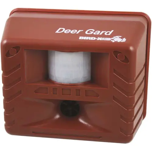 The Bird X Deer Gard Electronic Pest Repeller uses ultra-sonic sound waves to help effectively and humanely deter deer and other destructive animals from your property. Covers a full 4,000 sq. ft. of area. Use in gardens to protect flowers and plants without mixing and spraying chemicals. The repeller features keyhole slots for easy mounting and you can choose to power it with batteries or an AC adapter (batteries sold separately). Weatherproof. AC adapter included. May be operated with 4 C batteries (not included).