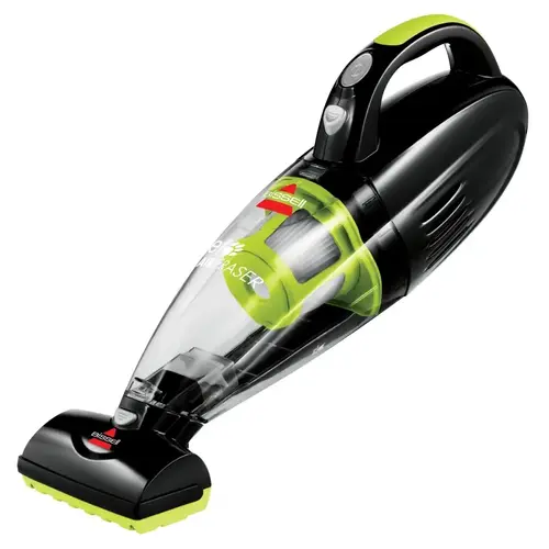 Clean wherever your pet goes with the BISSELL Pet Hair Eraser cordless handheld vacuum. This lightweight and cordless handheld device allows you to clean up pet hair and dirt that collects on your furniture, in your carpet, in your car or wherever your furry friends play. The detachable motorized brush helps capture more embedded pet hair and dirt, providing a deeper clean. The included crevice tool and upholstery tool can be used separately or stacked together to combine their usefulness. In addition, this pet hair vacuum has a two stage filtration system designed to help extend the life of the filter and provide easier cleaning.