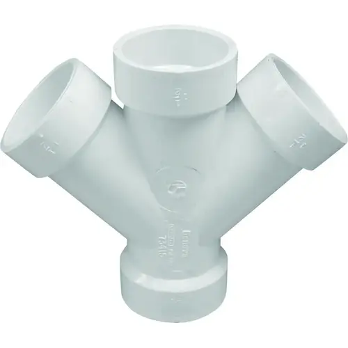 B & K Double Pipe Wye, Nominal Size: 3 in, Hub Connection, Schedule Rating: SCH 40, PVC, White