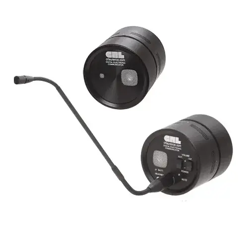 Different headset styles and other accessories are available. Select either the AC Plug-In Transformer Model, or the DC Rechargeable Battery Powered Model. Units are available as standard or bullet resistant models in satin or black anodized finishes.