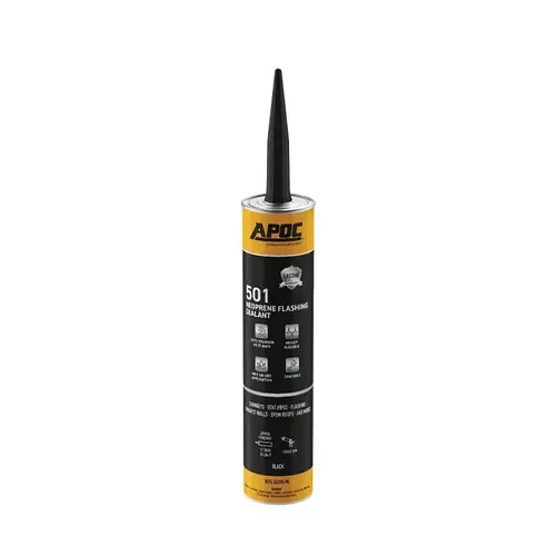 APOC 501 neoprene flashing sealant is a highly flexible, paintable, long-lasting, permanent repair product that has superior wet surface adhesion and gets stronger with age. APOC 501 will not sag and is extremely versatile on various substrates EPDM (rubber), TPO, PVC, shingles, asphalt and more.