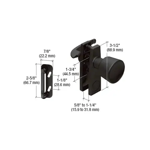 Use this CRL Tulip Knob Latch as a replacement part on out-swinging wood or metal storm or screen doors fit 5/8" to 1-1/4" (16 to 32 mm) thick doors, requires three mounting holes 7/8" (22 mm) apart. It comes complete with resilient door strike, mounting shims and a night lock. To make this unit a keyed unit, order a K5021 locking unit.