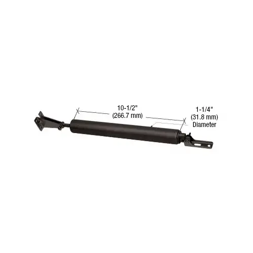 This CRL Pneumatic Closer has adjustable closing speed that insures doors shut securely. An interior oil reservoir continuously lubricates all internal parts for silent operation and it has a chip-proof aluminum finish. Its designed for out-swinging wood or metal doors; fits 5/8" to 1-1/4" (16 to 32 mm) thick doors with full 90 degree opening. This closer is the original replacement for the most popular selling storm and screen door closers.