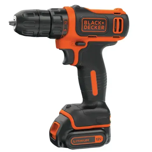 Black+Decker Driver, Tool Only/Battery Included: Battery Included, 12 V, 1.5 Ah Battery, 3/8 in Chuck, Keyless Chuck, Includes: (1) BDCDD12C Drill, (1) 12V Max Battery, (1) Battery Charger, (1) Double Ended Bit, Clutch Settings: 11, Load Speed: 550 rpm, Lithium-Ion Battery