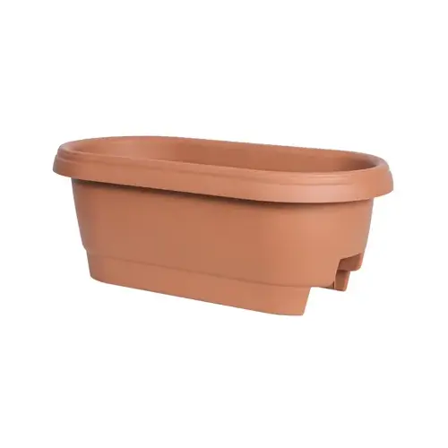 This is the long version of the classic deck rail planter. It fits snug to the railing, has a large planting area and comes in four colors.