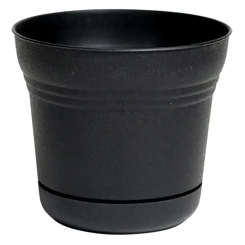 Bloem Planter, 14 in, Round, 5 gal, Black, Plastic, 12-3/4 in H, Indoor/Outdoor: Indoor, Outdoor, Includes: Drainage Holes and Saucer
