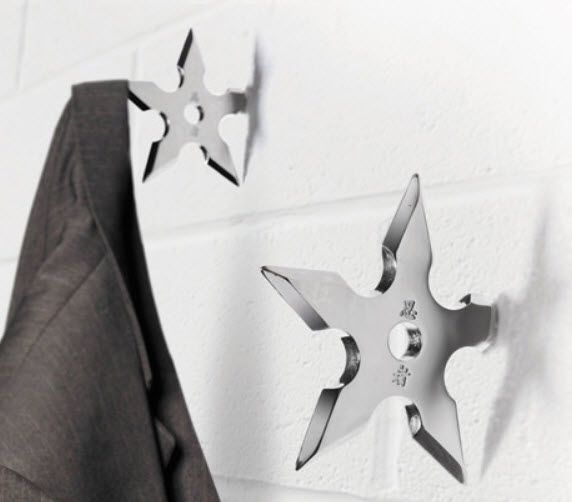 Perfect for your mixed-martial arts school, ninjutsu studio, or a samurai's shower, these shuriken coat hooks add a certain lethality to any room. Feel like a medieval Japanese assassin every time you hang up your bathrobe or grab your umbrella!