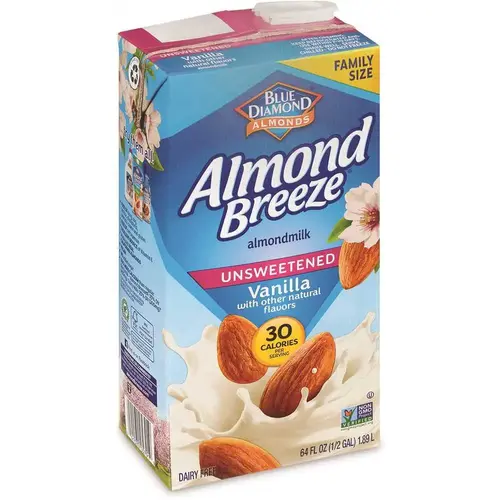 Blue Diamond Almond Breeze Almond Milk. Pour This Delicious Almond Milk Into Your Favorite Cereal Or Mix Into A Smoothie For Great Unsweetened Vanilla Taste. Non-Gmo And Kosher Almond Milk Made From Real Almonds. An Excellent Source Of Calcium, Vitamin D, E, And A. Mfg #5791