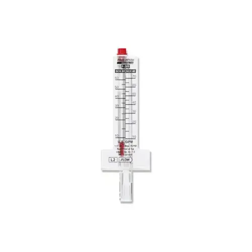 Blue White 6" Flowmeter (CF-30600P) features a durable acrylic body with a pitot tube design, measuring flow rates from 170 to 1100 GPM (Schedule 40) or 160 to 1000 GPM (Schedule 80) on a dual GPM/LPM scale. Designed for 6" horizontal PVC pipes, it offers corrosion-resistant internals and stainless steel clamps for accurate readings and easy clamp-on installation.Compatible with 6" Schedule 40/80 PVC pipes; NSF 50 listed for pool use, per Blue-White specs.Dimensions: 6-3/4" L x 2-1/2" W x 1" D; max 150 PSI at 70 degreeF; includes gasket and clamps.