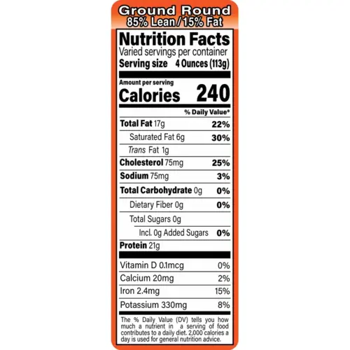 Meat Nutritional Label