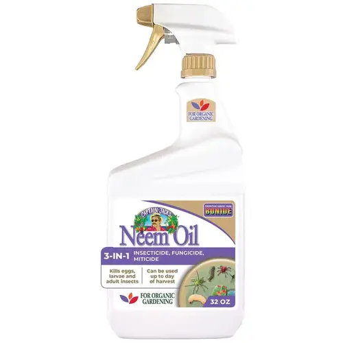 • MULTI-PURPOSE BUG KILLER - Bonide Neem Oil is a perfect pest control solution for any garden dealing with mites, flies, mildew, and more. This product is a three-in-one fungicide, miticide, and insecticide.