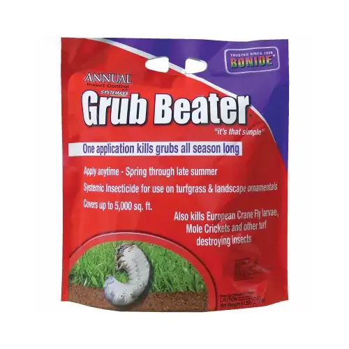 One application kills grubs all season long (only one "Annual" application is needed). Apply annually anytime from spring through late summer. Systemic insecticide for use on turf, grass and lawnscape ornamentals. Contains 0.5% imidacloprid, the active ingredient used in Merit. Covers 5000 sq-ft.