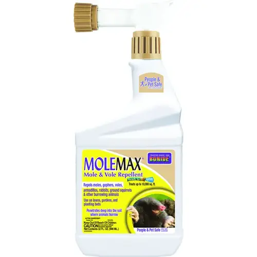 People and pet safe when used as directed. Repel moles, voles, gophers, rabbits, armadillos, skunk in lawns, flower beds and gardens. The 1 qt treats 10,000 sq-ft area and lasts up to 3 months.