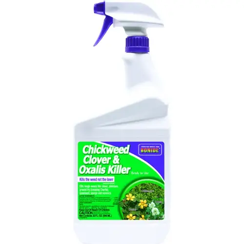 For chickweed, clover and oxalis as well as other tough weeds. Systemic action kills to the root. One pint treats 5000 sq-ft. Contains the active ingredient such as horsepower (Triclopyr + MCPA + Dicamba).
