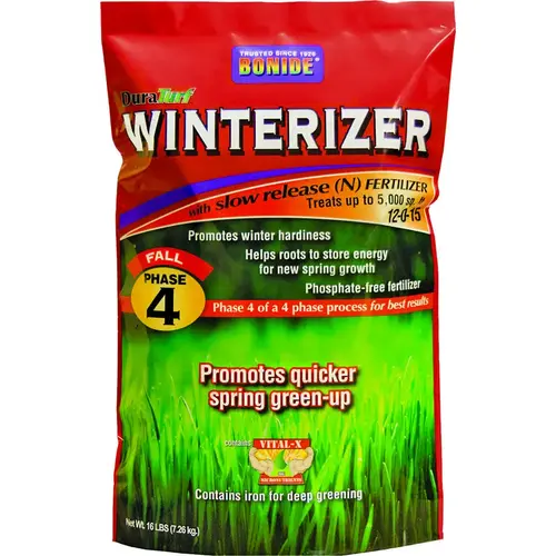 BONIDE DuraTurf Winterizer is specifically designed for Fall application. Slow-release fertilizer provides iron and sulfur throughout the winter months. Promotes winter hardiness.