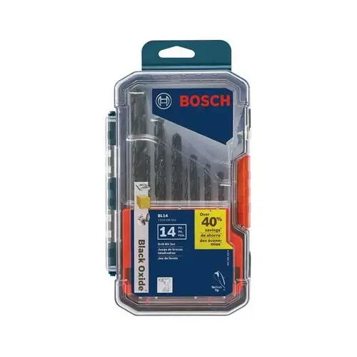 Bosch BL14 Bosch Jobber Length Drill Bit Set, 14-Piece, Steel, Black Oxide