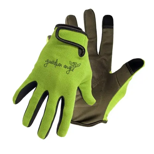 BOSS Mechanic Gloves, Touchscreen, Size: L, Synthetic Leather, White, Rib-Knit Cuff