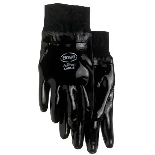 Fully coated black neoprene, premium, smooth grip, interlock lined, knit wrist.