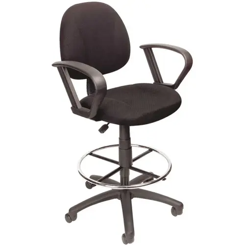 BOSS Office Products B1617-BK Black Fabric Drafting Chair with Loop Arms and Seat Heigh Adjustment
