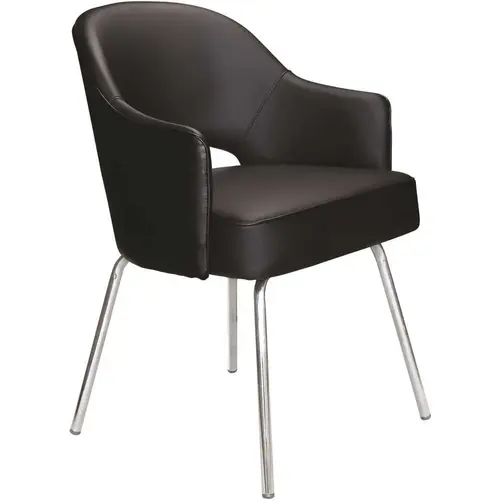 Contemporary Styled Guest Chair. Upholstered in Black CaressoftPlus Vinyl. 4 Sturdy Steel legs with chrome finish.