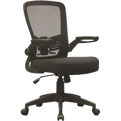 Deluxe Mesh Back Ergronomic Task Chair Black Frame/Fabric Breathable Mesh Back For Comfort Sitting Lumbar Supporting Mesh Back Deluxe Comfort Large Seat Cushion Pneumatic Seat Height Adjustment Tilt Mechanism with Tension Control and Upright Lock Position Flip-Up Padded Arms for Easy Access to Chair Weight Capacity 275 Lbs 25" Black Nylon Base 2" Dual Wheel Casters Mfg #B6366BK-BK