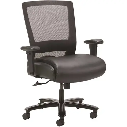 Our heavy duty mesh chair makes the perfect companion to any office, board room, or study. Its 400 pound weight capacity ensures a comfortable sitting experience with a broad range of body types. It's seat is elegantly upholstered in black Caressoft and features a soft pillow top cushions for added comfort. The mesh back allows the cushion to breath with no moisture build up. It has height adjustable arms. The chair features pneumatic gas lift seat height adjustment, a heavy duty spring tilt mechanism, and tilt tension control. All of this sits atop a large 29 in. steel base with five large heavy duty casters.