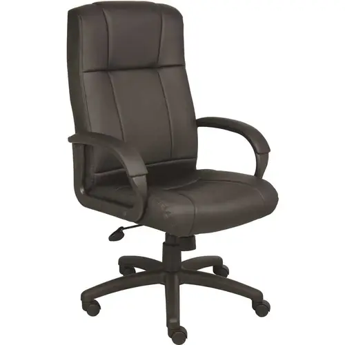 Beautifully upholstered with ultra-soft and durable Caressoft upholstery. Executive High Back styling with extra lumbar support. Padded armrests covered with Caressoft upholstery. Large 27 in. nylon base for greater stability. Upright locking position.