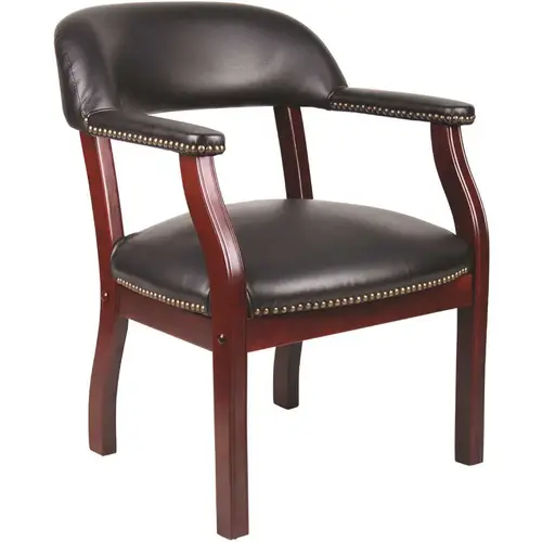 The Captain's chair has been a favorite chair for every den, study, game room or dining area in the home or office. It is built of sturdy hardwood frame and comfortable no-sag spring construction in the seat cushion. Beautifully upholstered in rich vinyl.