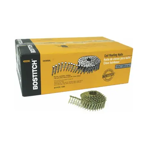 Bostitch Roofing Nail, Collation Type: Wire Weld, Collation Angle: 15 deg, Point Type: Diamond, Shank Type: Smooth, Material Gauge: 11, 0.12 in Dia, 1-3/4 in L, Galvanized Steel, Suitable for: Bostitch RN45B, RN46 Pneumatic Nailer, ATRO CN134 Roofing Roll, CRAFTSMAN 18324, 154500, DeWalt D51321, Paslode 3175RCU, Hitachi NV45AB, NV45AC, NV45AB2, Hitachi NV45AB, NV45AC, NV45AB2, Porter-Cable RN175A, Ridgid R350CHA, Senco SN2+, SN3, SN325+. SN4,SN70, FramePro Tools