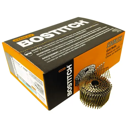 Bostitch Siding Nail, Collation Type: Wire Weld, Collation Angle: 15 deg, Point Type: Blunt Diamond, Shank Type: Ring, 0.092 in Dia, 2-3/16 in L, Stainless Steel, Suitable for: N80CB, N86C, N89C, N100C, N100CPP, N75C Pneumatic Nailer, Hitachi NV65AH, Max CN565, Makita AN611, Porter-Cable COIL200, COIL250 Tools