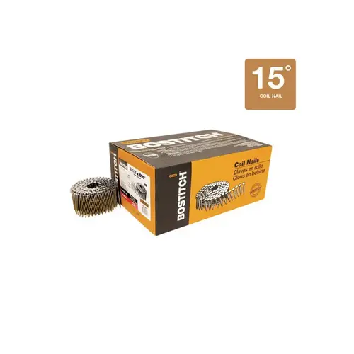 Bostitch Framing Nail, Collation Type: Wire Weld, Collation Angle: 15 deg, Head Type: Full Round, Point Type: Blunt Diamond, Shank Type: Ring, 0.099 in Dia, 2-1/2 in L, Steel, Suitable for: N80CB, N86C, N89C, N100C, N100CPP, N75C Pneumatic Nailer, DUOFAST CNW-75, Hitachi NV83A, Makita AN901, Max 890C, Paslode F275C,P275C, F325C, P325C, 5300C, Porter-Cable Coil350, Senco SCN60, SCN65 Nailer