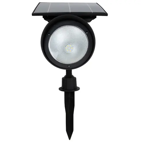 Solar, spot light has a lumens selector and is constructed of plastic.
