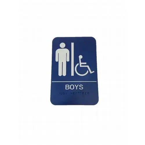 A.D.A. Sign, Boys/Handicap, Rectangle, 6 in. Wide x 9 in. High, Raised Lettering, White on Blue