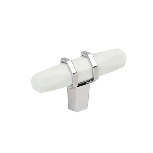 The Amerock BP36647MW26 Carrione 2-1/2 inch (64mm) Length Knob is finished in Marble White/Polished Chrome.